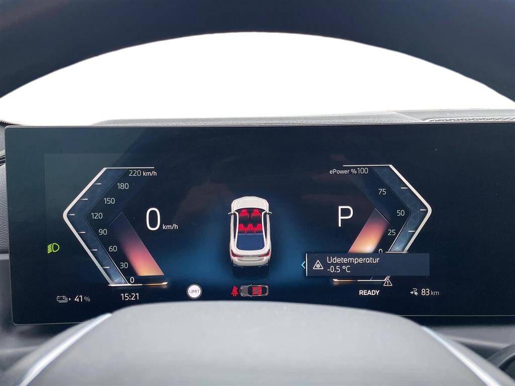 Aircondition, Android Auto, App integration, Apple CarPlay, Automatgear, Automatisk op-/nedblænding, Bakkamera, Bluetooth, Digital instrumentering, DAB+ radio, DAB radio, El-foldbare spejle, El-håndbremse, Elruder for/bag, Fartpilot adaptiv, Kørecomputer, LED lys i varerum, Midterarmlæn, Multifunktionsrat, Musikstreaming via bluetooth, Navigation, Nøglefri døre, Nøglefri start, Parkeringssensor for/bag, Sædevarme for, Klimaanlæg 3-zoner, Touch Skærm, Trådløs mobilopladning, Udvendig temperaturmåler, USB-C stik, Varmepumpe, Armlæn bag, Højdejusterbart førersæde, Højdejusterbart passagersæde, Justerbart rat, Kopholder, Læderkabine, Læderrat, Mørk loftbeklædning, ABS, Airbag, Alarm, Antispin, Auto hold, Automatisk nødopkald, Dæktrykssensor, ESP, Fører-airbag, Isofix, Lyssensor, Selealarm, Skiltegenkendelse, Træthedsregistrering, 18" Alufælge
