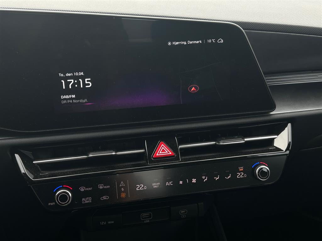 10,25" touchskærm m. navigation & Kia Connect, Digital instrumentering, 12V udtag, Apple CarPlay, Android Auto, Aut. nedblændeligt bakspejl, Automatgear, Automatisk op/nedblænding, Bakkamera, Bluetooth, El-håndbremse, Elruder for/bag, El-foldbare spejle m. varme, Fartpilot adaptiv, Håndfri telefon, Infocenter, Klimaanlæg 2-zoner, Multifunktionsrat, Navigation, Nøglefri døre, Nøglefri start, Radio, Regnsensor, Servo, Sædevarme for, Varme i rat, 17" Alufælge, LED Kørelys, LED baglygter, Metallak, Splitbagsæde, Dellæderkabine, Læderrat, Armlæn, Automatisk nødbremsesystem, Dæktrykssensor, Gardin-airbag, Isofix, Lyssensor, Selealarm, Selestrammer, Vejbaneassistent